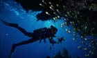 by plumes of acid-yellow fish. Al Jadir island, atop its deep trench, is swarming with confident sharks, the whitetip reef sharks flicking towards you before nonchalantly going about their business. And the night dive from Mar Mar island is stunning: its underground wall of coral looks like the inside of a medieval cathedral and is populated by humphead parrotfish the size of small cows.