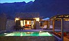 My first impression didn't help. The two-hour transfer stopped 10 minutes short of the resort and some 500m above it, from where new arrivals could paraglide down to check in, an inspired bit of gimmickry which dominated the hotel's launch publicity. But as I gazed down at the cluster of neat brown cubes, studded with palm trees, the scene reminded me of an army encampment. Up close it is less harsh but still far from warm: villas have been constructed to a traditional Omani design, but the stone cladding, raffia fencing and heavy wood are not easy on the eye.