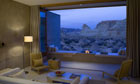Architecturally it's a masterpiece. It was designed by a local firm, and the sharp angles and minimalist styling manage to avoid the froideur this type of building normally exudes. Perhaps it's because the hotel building incorporates local stone and rock to create a warm tone that will weather to match the natural backdrop. Perhaps it's because the right angles and dramatic lines have been placed in such a way as to allow glimpses of the sunwashed landscapes. Or perhaps it's the fact that the hotel really does blend right into the surroundings: beyond our room lay a small seating space with a fire; beyond that lay empty scrub and rock. There was no boundary, no fence – just a single footfall between hotel and desert, between everything and nothing.