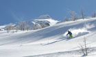 For a few moments we savour that delicious mixture of nerves and excitement. No one speaks much. Then one by one we push off, gingerly testing the snow's stability at first, making short, tight, slow turns, then, as the gradient eases, relaxing, ramping up the speed and making wide, carving arcs, each one throwing up a huge plume of snow that sparkles in the afternoon sun.