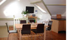 Eco-paints in restful green and grey have been used throughout and, as the light through Velux windows in the roof fades, and traffic below ceases, there's a sense of being completely tucked away in my own eyrie, while supper cooks.