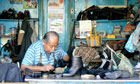 Natalie Mayer, judge: Lovely colours, and an interesting scene, perfectly cropped. There is a whole life going on in that little shop, even a christmas tree up on the shelf, CD's, the Pope ... and the man is intently working, oblivious to the camera. This shot is spot on