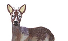 Medium-sized and greyish brown, with characteristically pointed ears, the smaller of Britain’s two native species is a far shyer and less showy creature than the red deer, though a recent increase in numbers means that it is more likely to be encountered nowadays than before. Males have two long, thin, pointed antlers. Found in woods and open countryside throughout Scotland and northern England, with a growing population in the south and west