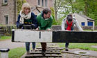 To raise the canal by 64 metres, there are 16 locks to open and close, which takes three hours. In the rain, that soon palled. By number eight, we downed tools and got back on board: kettle on, brownies out … more like it.
