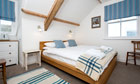 Framed posters of previous exhibitions at Penlee House in Penzance punctuate the stairway to 10 guest rooms. Mine is at the top. Stripped beams, painted bedside tables, water in a carafe, sockets a-go-go, free Wi-Fi – and mobile reception to boot.