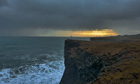 Beside lava fields and berserkers, Snæfellsnes is a series of volcanoes set against waterfalls and glaciers, enclosed by cliffs and beaches. The peninsula is reworked each day by changing weather. That day stony clouds dipped and hugged the horizon. I walked along a coastal cliff where the sea shuddered against the rocks and flung foam high into the air, dusting the clifftop with salt spray. The cliffs gave way to beaches of black volcanic sand that seemed to stain the water black.