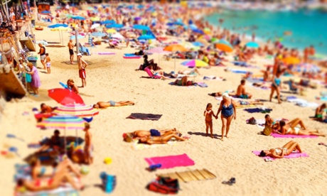 A scorching day in the largest of three highly recommended seaside towns in the region of Palafrugell, 50km from Girona (the other two are Calella de Palafrugell and Tamariu). All three have child-friendly sandy beaches, ideal for swimming and rockpooling. Photograph: Photograph: Ranjit Dhaliwal for the Guardian
