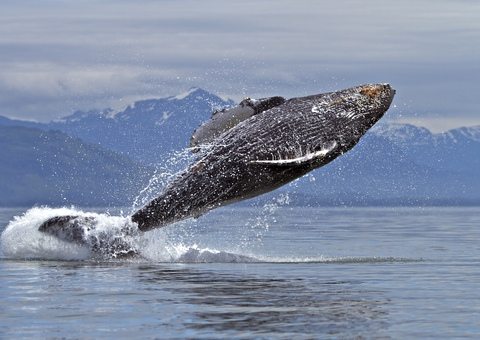 A whale breaching the surace at Frederick Sound in the Alexander archipelago in south-eastern Alaska. Photograph: Jon Cornforth/Barcroft Media Photograph: Jon Cornforth / Barcroft Media