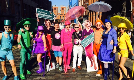 The Nualas, an all-female Irish comedy trio, have me spluttering prosecco down my front with their song about Irish abortion laws. Panti Bliss, aka Rory O’Neill – the drag queen, gay icon and now national treasure who was the yes campaign’s ace card in the referendum – tells a wonderful story about meeting Madonna: “Her default setting is jokey cunt.” His dress is fabulous: a glitter ball stuffed in a Coca-Cola bottle.